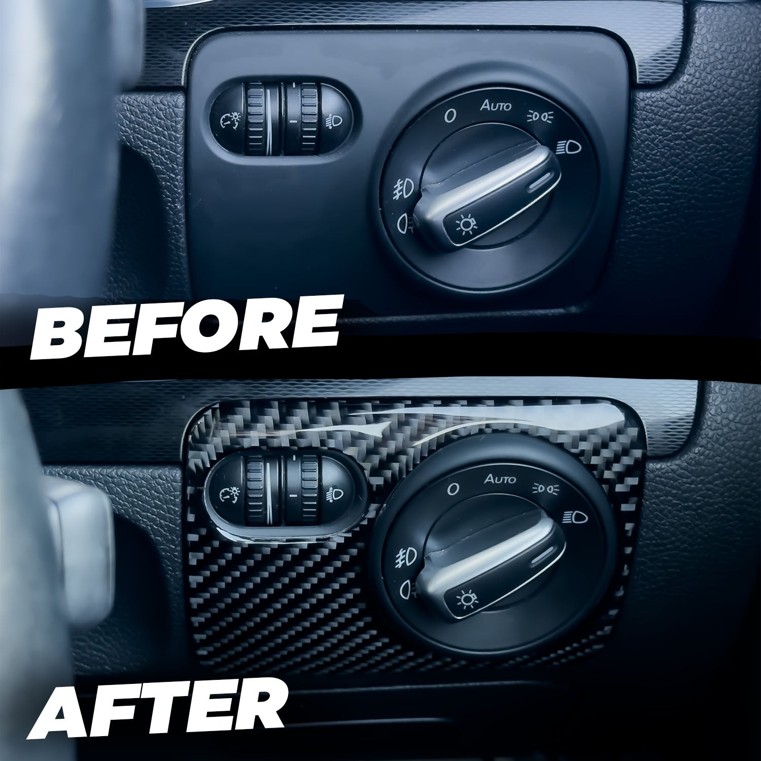 VW Golf MK5 Carbon Fibre Headlight Control Cover Upgrade your Golf MK5’s interior with a refined touch of real carbon fibre. This headlight control frame is crafted from authentic 2x2 twill weave carbon, delivering a subtle yet sporty enhancement that blends effortlessly into your dash. 🏁 Genuine...